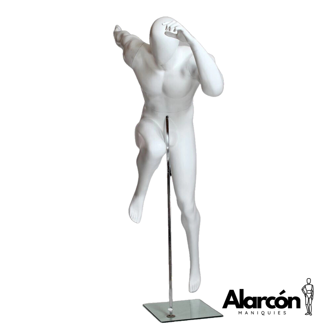 El enganche a la base se encuentra en la cadera, lo que permite que el maniquí tenga una pose única y la ropa se luzca de la mejor manera.