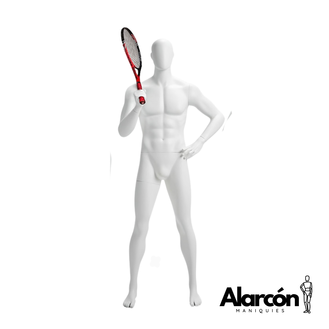 Este maniquí deportivo es ideal para exhibir accesorios e indumentaria de tenis.