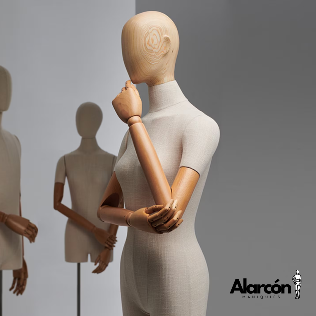 Nuestros maniquíes importados articulados para sastrería, tienen el cuerpo de fibra de vidrio y están forrados en lienzo.