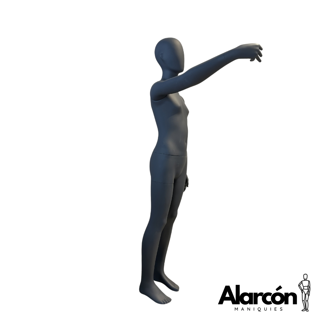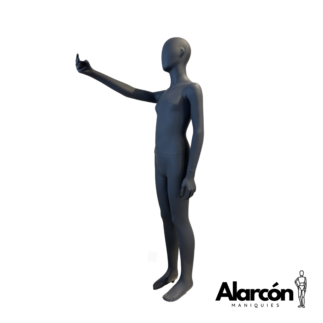 Este maniquí infantil destaca cualquier prenda gracias a su pose divertida y expresiva.
